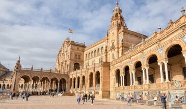 Śniadanie. Przejazd do SEWILLI. Zwiedzanie miasta: spacer do miejsca, gdzie Park Marii Luizy łączy się z Plaza Espana, stanowiącą wizytówkę miasta, następnie przejście do dzielnicy Arenal nad rzeką Gwadalkiwir, w celu zobaczenia najważniejszej w Hiszpanii areny corridy - La Maestranza, oraz Złotej Wieży. Spacer przez dawną dzielnicę żydowską - Santa Cruz, następnie zwiedzanie największej w Europie gotyckiej katedry, wraz z symbolem miasta - Wieżą Giralda - dziś dzwonnicą a dawniej minaretem. Przejazd do hotelu. Obiadokolacja. Nocleg.